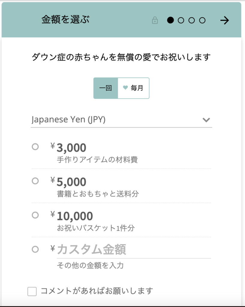 一回のみの寄付を選択することも出来ます。