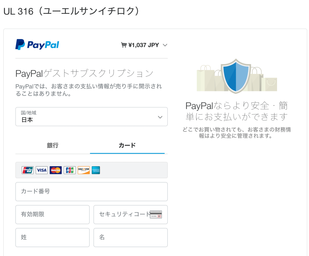 クレジットカード決済はPaypalによってセキュリティが保護されています。