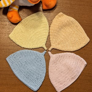 - どんぐり帽子(かぎ針編み、頭囲サイズ約42cm、オーガニックコットン)
