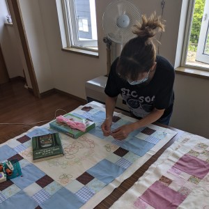 - ベビーキルト(手縫い or ミシン、サイズ約100x100cm、表裏布綿100%、キルト芯ポリエステル)